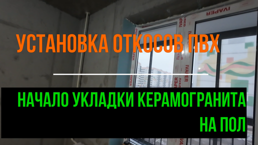Установка откосов ПВХ. Начало укладки плитки на пол в коридоре