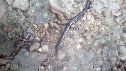 Пиявка выползла на берег, потом вернулась в воду. ЦБС СО РАН, ручей Зырянка, несколько метров ниже плотины.