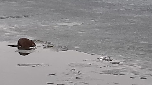 Ондатра на льду протОки р.Ангара,ест зелёные вОдоросли.(Иркутск-2,4.05.23)