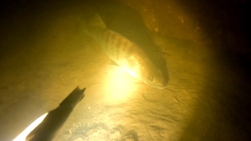Ночная подводная охота на Десногорском вдхр по руслу( в черте города)