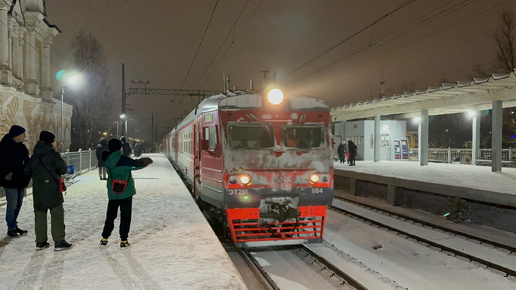 Электропоезд ЭТ2М - 084 на пл.Сергиево, январь 2025 года