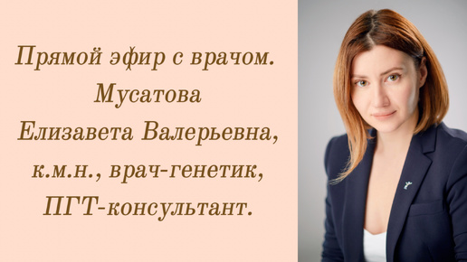 Прямой эфир с врачом. Мусатова Елизавета Валерьевна, врач-генетик, ПГТ-консультант.