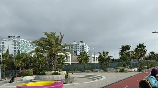 ФТ Сириус (Сочи). Небольшая прогулка по Имеретинской набережной от столовой Bon Appetit до отеля Radisson. Ветреный февральский день.