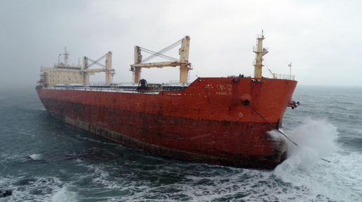 Специалисты начали обследовать севший на мель у Сахалина китайский сухогруз