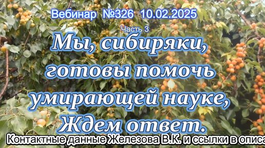 Железов Валерий. Вебинар 326. ч.3. Мы, сибиряки, готовы помочь умирающей науке, Ждем ответ.
