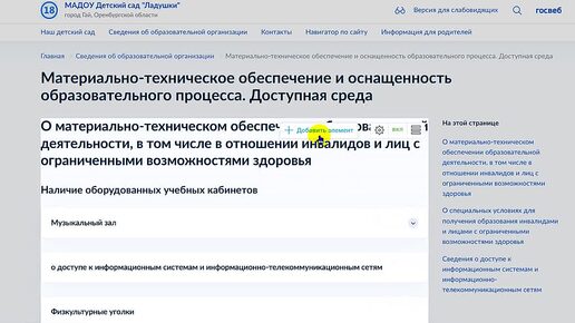 Особенности редактирования раздела Мат-техническое обеспечение на сайте Госвеб