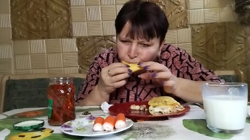 Мукбанг. Крабовые роллы с сыром, шаурма, перец Чили, молоко. 😋👍
