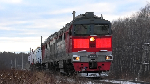 2ТЭ116-1628 с тремя цистернами