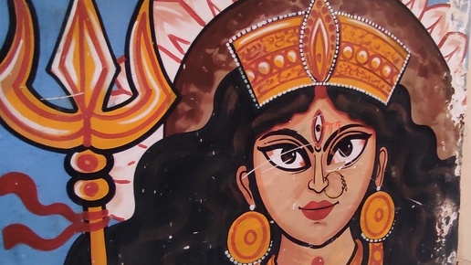 Рисую богиню Дургу. Картина акрилом в индийском стиле. Дурга маа. Холст 10*10