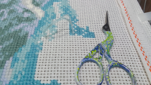 Вышивка крестиком. 24 Озеро от риолис. Кому нужен мк по изнанке? Плюс в комментах.