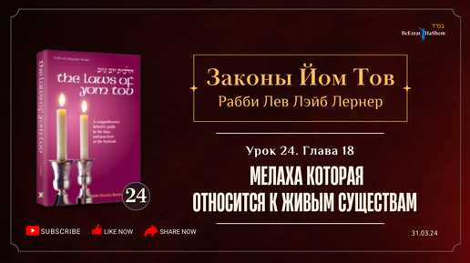 𝟮𝟰. Законы Йом Тов | Мелаха которая относится к живым существам | Глава 18 | Рабби Лев Лэйб Лернер