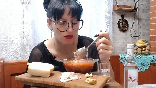 Алко МУГБАНГ АДАМОВНА Борщ сало,хлеб, горчица и чеснок. Ням ням 😋