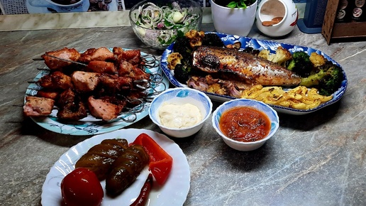 Ну очень Вкусный Семейный Ужин.. Муж помогает готовить.. С помощником всё быстро получается..