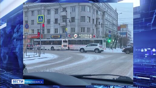 В Красноярске из-за утреннего снегопада резко ухудшилась дорожная обстановка