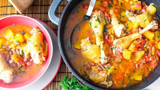 Тыква с курицей на сковороде. Просто и вкусно.