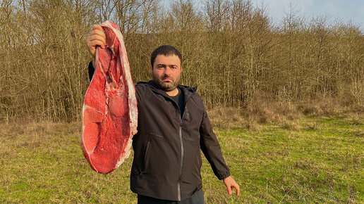Как Зажарить Огромный Кусок Мяса в Лесу На Углях Без Шапура
