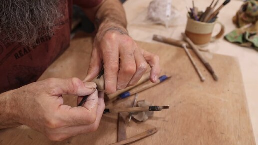 Гончар Иван Безбородов рассказал о себе и слепил свистульку.