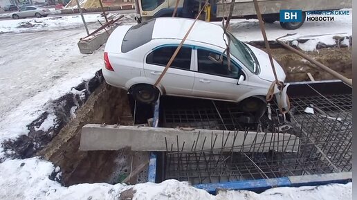 Читатель "ВН" показал, как достают машину из ямы на Остужева