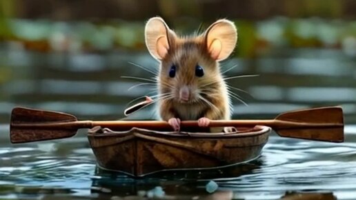 Отважный мышонок плывет на лодке через пруд – Позитивная открытка с пожеланием доброго утра и хорошего дня! С красивой картинкой.