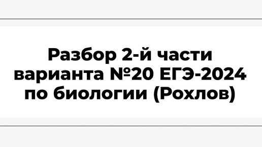 Разбор 2-й части варианта №20 ЕГЭ-2024 по биологии (Рохлов)