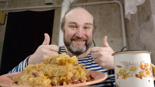 Обед. Вчерашняя капуста с фасолью. Про моё образование и работу. Высшее образование не приходилось. Мукбанг. Обжор. Еда на камеру. Диета.