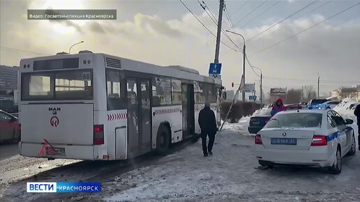 В Центральном районе Красноярска автобус с пассажирами въехал в столб