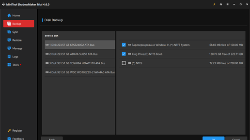 MiniTool ShadowMaker создание резервной копии операционной системы Windows и сервера.