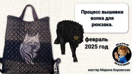 Процесс вышивки волка для рюкзака ручной работы от мастера Марины Боровской