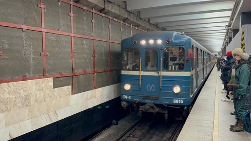 "Гуднул!" Метропоезд Ем-501/Ема-502 (81-501/502) №117 на ст.м.Проспект Ветеранов, февраль 2025 года
