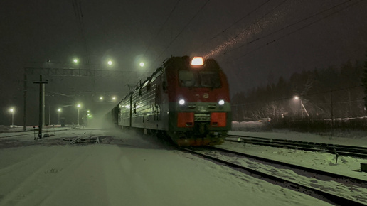 "Длиннющий!" Электровоз "Ермак" 2ЭС5К - 384 с грузовым поездом на ст.Онежский, январь 2025 года
