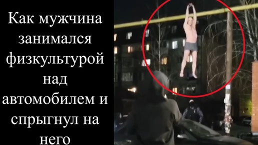 Как мужчина занимался физкультурой над автомобилем и спрыгнул на него