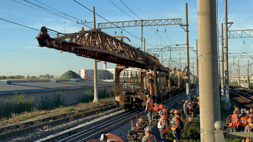 Замена рельсошпальной решетки на перегоне Нарвская - Предпортовая. Тепловоз 2М62-0522 с хоз.поездом