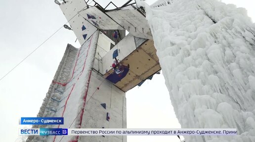 Контрольная точка - высота в 15 метров: в Анжеро-Судженске проходит первенство России по ледолазанию.