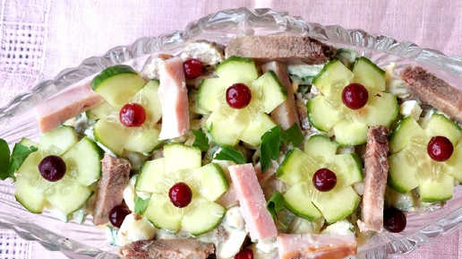Салат мясной на скорую руку. В салате и овощи и мясные продукты.