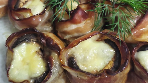 Шампиньоны с моцареллой в беконе// Горячая закуска