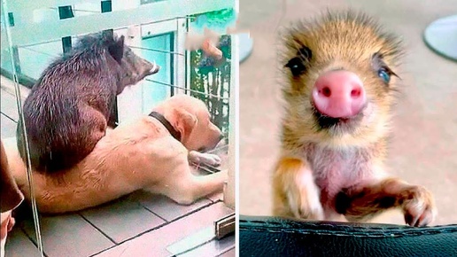 Собака усыновила дикого кабана! Теперь он думает что он собака.