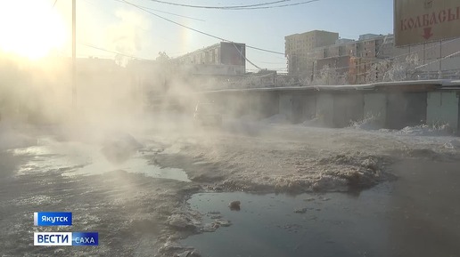 Большая коммунальная авария. В Якутске лопнувшая труба залила проезжую часть