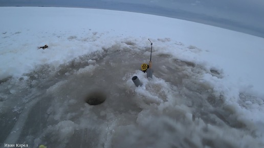 ПЕРВЫЙ ГИГАНТСКИЙ КОРЮХ. ЛУНКИ НАЧИНАЮТ РАБОТАТЬ. ПАЛАТКА И КУЧА УДОЧЕК. РЫБАЛКА НА КОРЮШКУ. ПОБЕРЕЖЬЕ БЕЛОГО МОРЯ. 2 ЧАСТЬ.