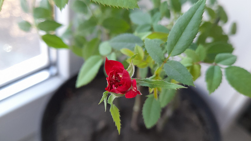 Первый бутон у черенка розы начал потихоньку раскрываться😍. Впервые удобряю черенки роз удобрением для роз и селитрой✅️
