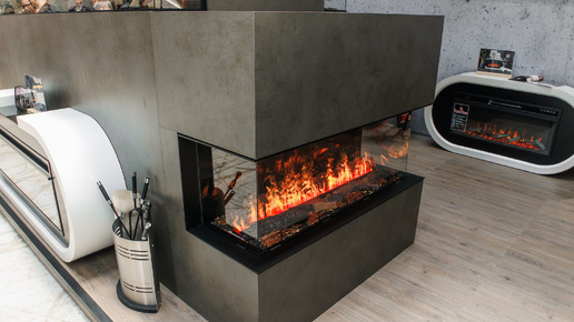 Трехсторонний премиум электрокамин с обогревом BRITISH FIRES New Forest 1200 with Deluxe Real logs