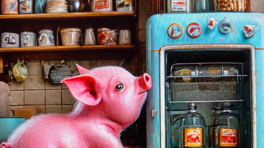 Розовый поросёнок, холодильник и печеньки
