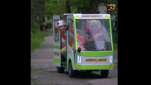 Манкиту на машине скорой помощи и старушка на скейте #shorts