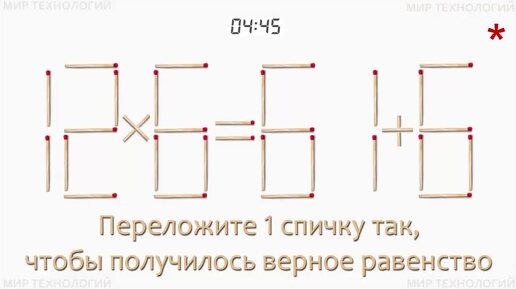 Задача 412 (2). Переложите 1 спичку так, чтобы получилось верное равенство (12 х 6 = 61 + 6)