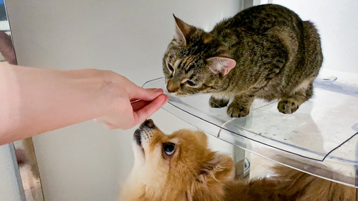 Я делаю вид, что даю стейк кошке и собаке