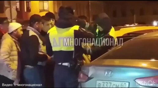 Синебот влетел в припаркованные машины! На место быстро приехала диаспора и окружила двух ДПСников.