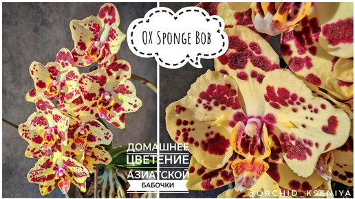 Phal. OX Sponge Bob (peloric - 2 eyes) | Домашнее цветение желтой орхидеи бабочки Спанч Боб | Обзор