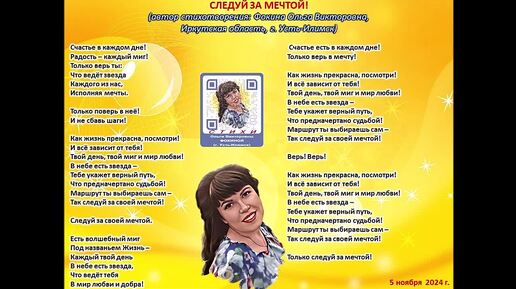 Песня на стихи Ольги Фокиной Следуй за мечтой