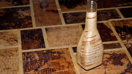 Далее: Винная бутылка, декор двумя кусками бересты.