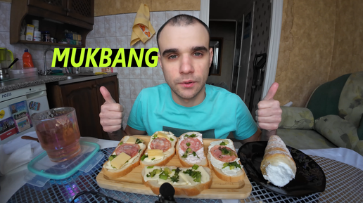 МУКБАНГ БУТЕРБРОДЫ С СЫРОМ, КОЛБАСОЙ, ПАСТОЙ ИЗ МОРЕПРОДУКТОВ / ПИРОЖНОЕ / EATING MUKBANG ASMR АСМР