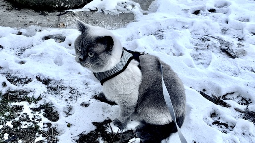 Первая реакция нашей кошки Буси - на снег, первый раз видит его!